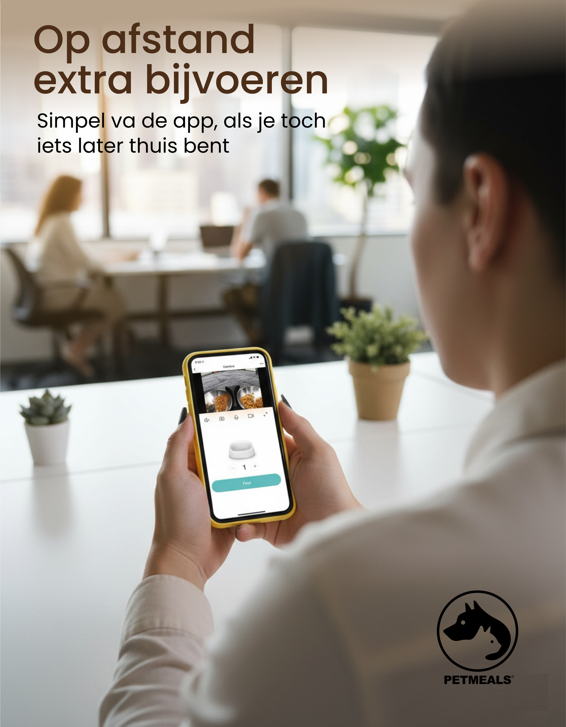 Met PetMeals® geef je je katten altijd de juiste portie, op het juiste moment, terwijl jij zonder zorgen van huis kunt. Perfect voor drukke werkdagen, weekendjes weg of spontaan uit eten.