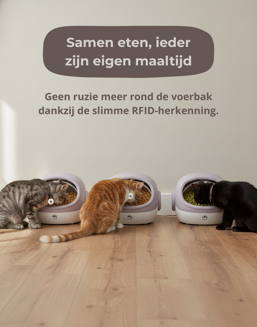 Meerdere huisdieren • Dieetvoeding • Katten met eigen voer • Drukke baasjes • Gezond eetgedrag